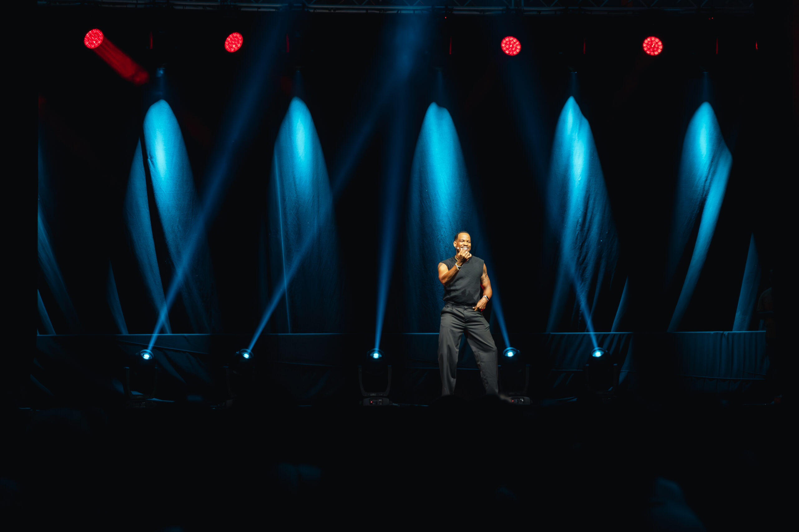 Pour accompagner ce spectacle, les équipes Maxoloc ont déployé un dispositif technique complet, pensé pour répondre aux exigences d’un show humoristique de grande envergure.