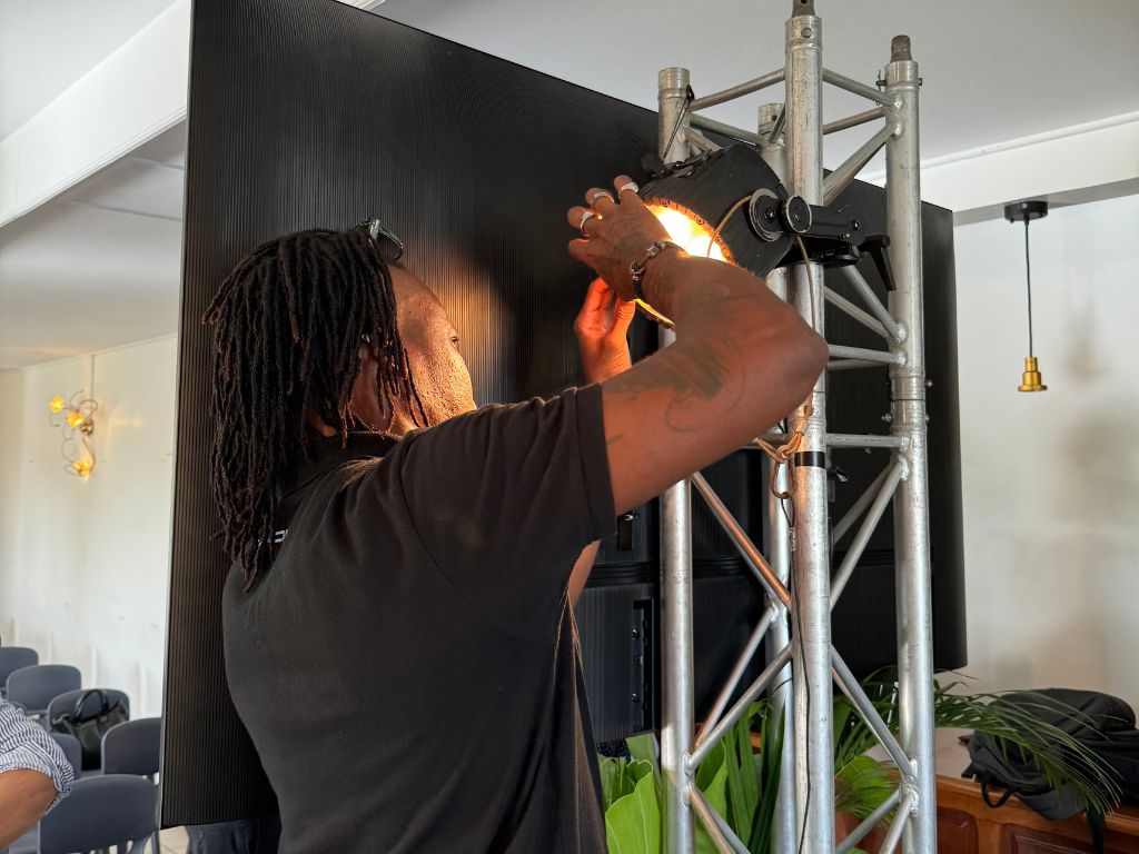 - Création d’un espace scénique élégant, adapté aux prises de paroles et aux tables rondes